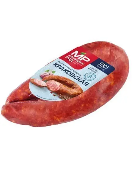 Продукт приготовлен в строгом соответствии ГОСТ. Из охлажденной говядины и грудинки свиной. Шпик обеспечивает продукту дополнительную сочность и аромат, а также красивый вид на разрезе. Колбаса в меру пряная, особый аромат ей придает молотый душистый перец и чеснок. Выпускается в натуральной оболочке.