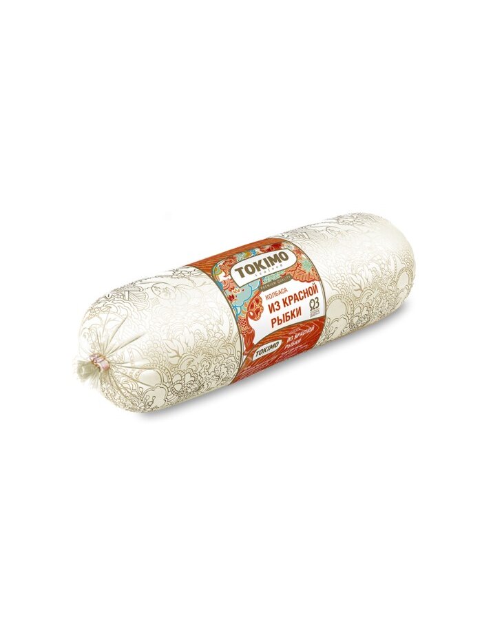 В составе кусочки горбуши, фарш лососёвый и сурими. На срезе рисунок – кусочки красной рыбы. Полезный, питательный продукт для взрослых и детей. Колбаса низкокалорийная, источник незаменимых полинасыщенных кислот Омега-3.