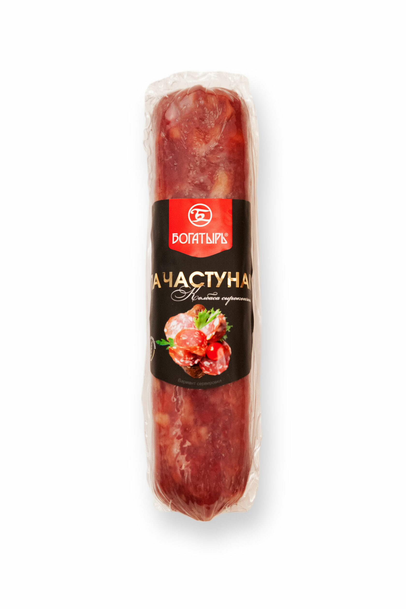 Мясной продукт. Колбасное изделие сырокопченое. Колбаса полусухая категории Б «Пачастунак», охлажденная.