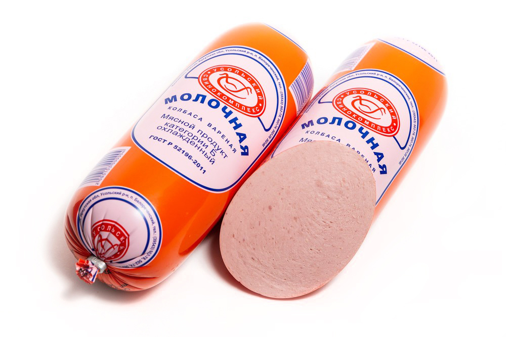 Состав: свинина, говядина, вода питьевая, молоко коровье сухое цельное, соль поваренная пищевая, яичный порошок, пряности и экстракты пряностей (перец черный, перец душистый, мускатный орех), стабилизаторы (пиро- и полифосфаты), регулятор кислотности (трифосфат), виноградный сахар (декстроза), антиокислитель (аскорбиновая кислота), усилитель вкуса (глутамат натрия), фиксатор окраски (нитрит натрия).