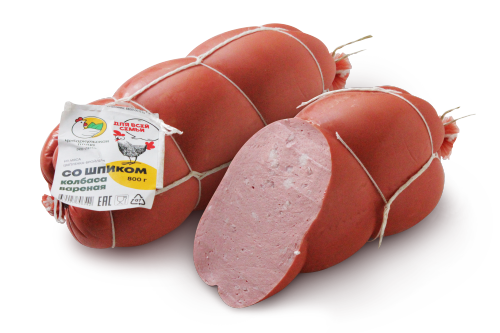 Колбаса вареная "Со шпиком" из мяса цыпленка-бройлера 800 г