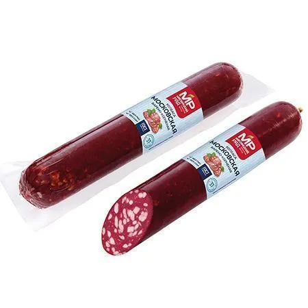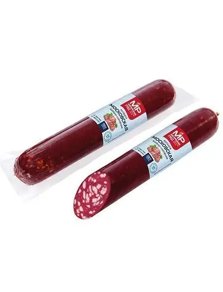 Классика варено-копченых колбас. Уникальность колбасе придают черный перец и кардамон, которые раскрываются в сочетании с ярким говяжьим вкусом вместе с ароматом копчения. Для ценителей высокобелкового питания! Для сравнения: в 100 г «Московской» 17 г белка, а в «Докторской» – 12 г. Также колбаса содержит большое количество гемоглобина. Продукт категории А (бывший высший сорт): массовая доля мышечной ткани более 80%. Приготовлен из говядины высшего сорта и шпика. Идеально подходит для приготовления аппетитных бутербродов, салатов, закусок и даже первых блюд.