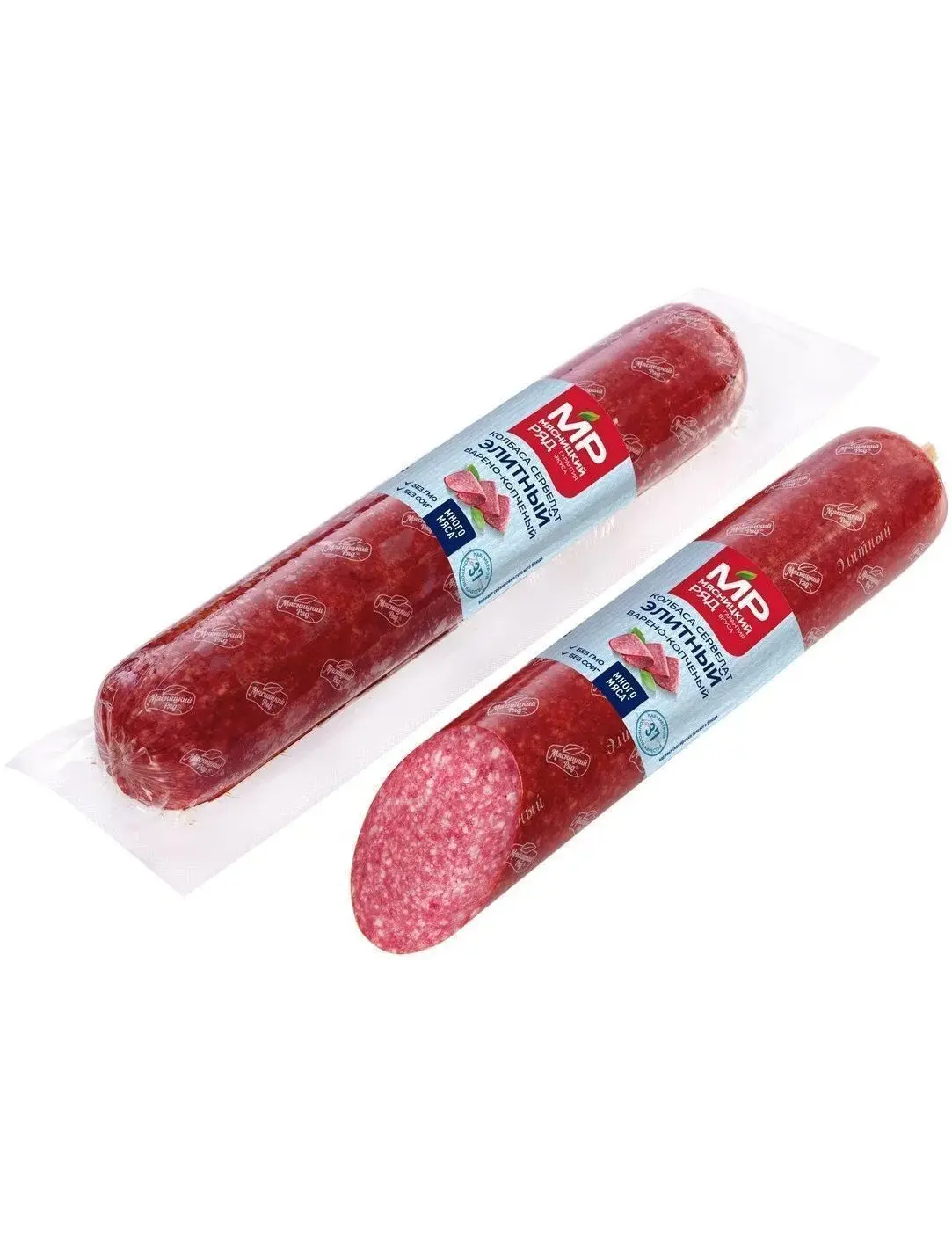 свинина, шпик свиной, вода, смесь нитритно-посолочная (соль поваренная, фиксатор окраски (нитрит натрия), молочный белок, глюкоза, специи (перец черный, белый, горчица), стабилизаторы (Е1412, Е450, Е452), регуляторы кислотности (Е451), усилитель вкуса и аромата (глутамат натрия), антиокислители (аскорбиновая кислота,лимонная кислота, аскорбат натрия), экстракты специй (перец белый, черный), желатин, эмульгатор (Е 471), загуститель (Е 1422), гемоглобин сухой, красители (кармин, сахарный колер (iv)).
