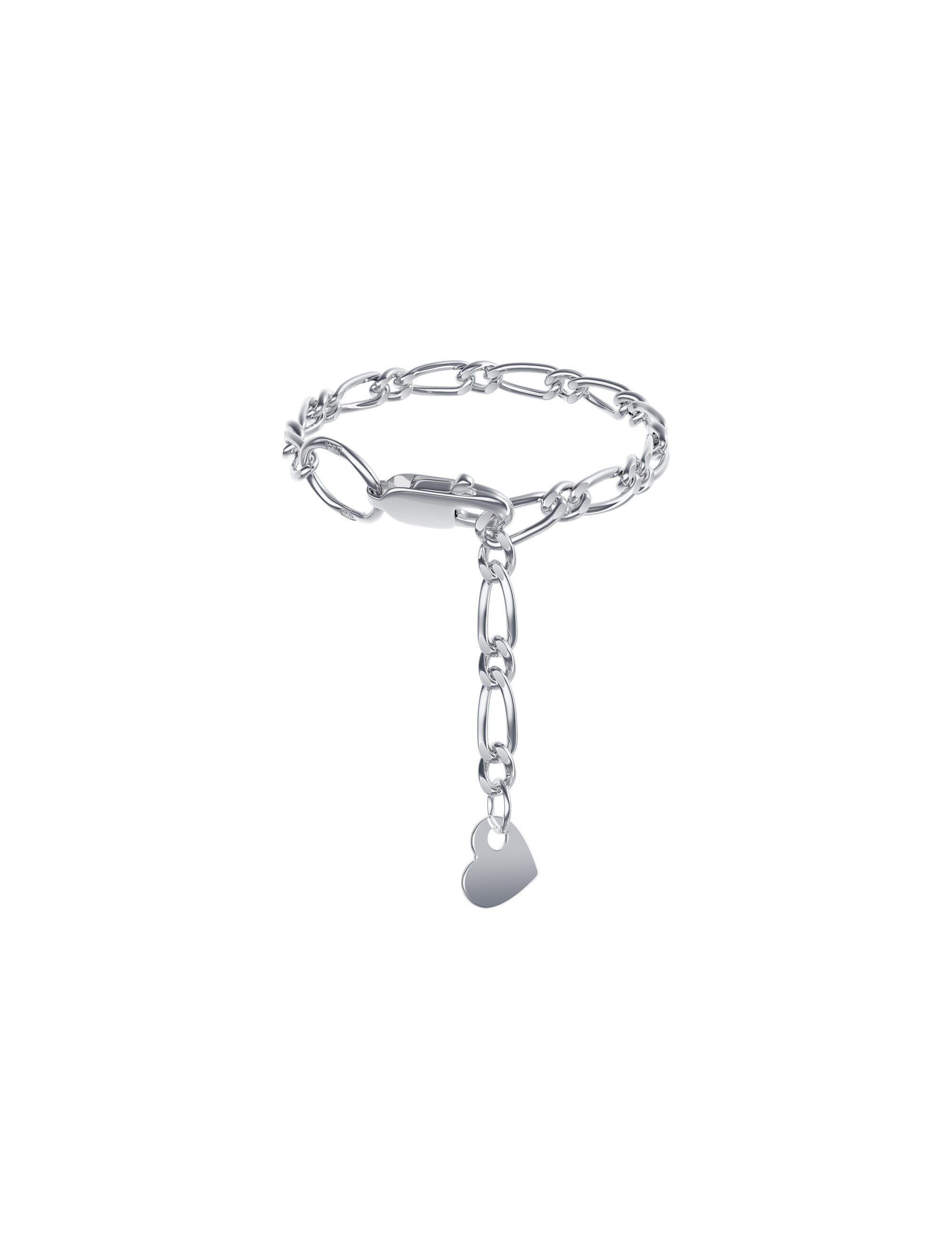 Кольцо Фигаро с подвеской "Сердце" - это стильное ювелирное украшение, сочетающее классическую цепочку типа "Фигаро"(чередование трех круглых и одного удлиненного звена) в форме кольца с небольшим кулоном-сердечком. Оно используется для создания романтичного образа, символизируя любовь, привязанность или нежность. Изделие имеет замок-карабин для регулирования размера изделия.