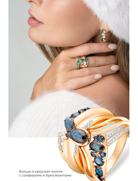 Кольцо из красного золота с сапфирами и бриллиантами - это классическое ювелирное украшение, сочетающее теплоту золотого оттенка с холодным блеском камней. Оно служит символом высокого статуса, мудрости и верности. Используется как помолвочное, обручальное или вечернее украшение, призванное защищать от зависти и приносить удачу. Сапфиры - это глубокие синие камни (васильковые), символизируют ясность мыслей, спокойствие и защиту от негатива. Они относятся к самым ценным драгоценным камням. Бриллианты используются как акцент, подчеркивающий блеск сапфира, символизируя твердость, совершенство и сияние.