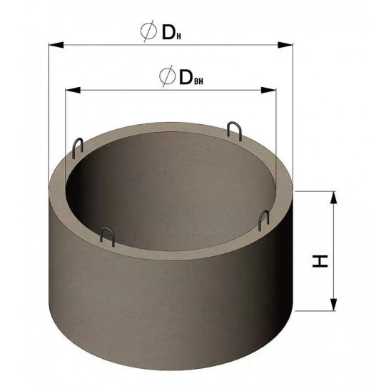 Внутренний диаметр (Dвн), мм: 1000 Наружный диаметр (Dн), мм: 1160 Высота (H), мм: 600 Толщина (H), мм: 85 Масса, кг: 385 Страна изготовитель: Россия Марка на прочность: В-15, М200 Отпускная прочность бетона, %: 70 Марка бетона по морозостойкости: F-100 Марка бетона по водонепроницаемости: W-2 Объем бетона, м3: