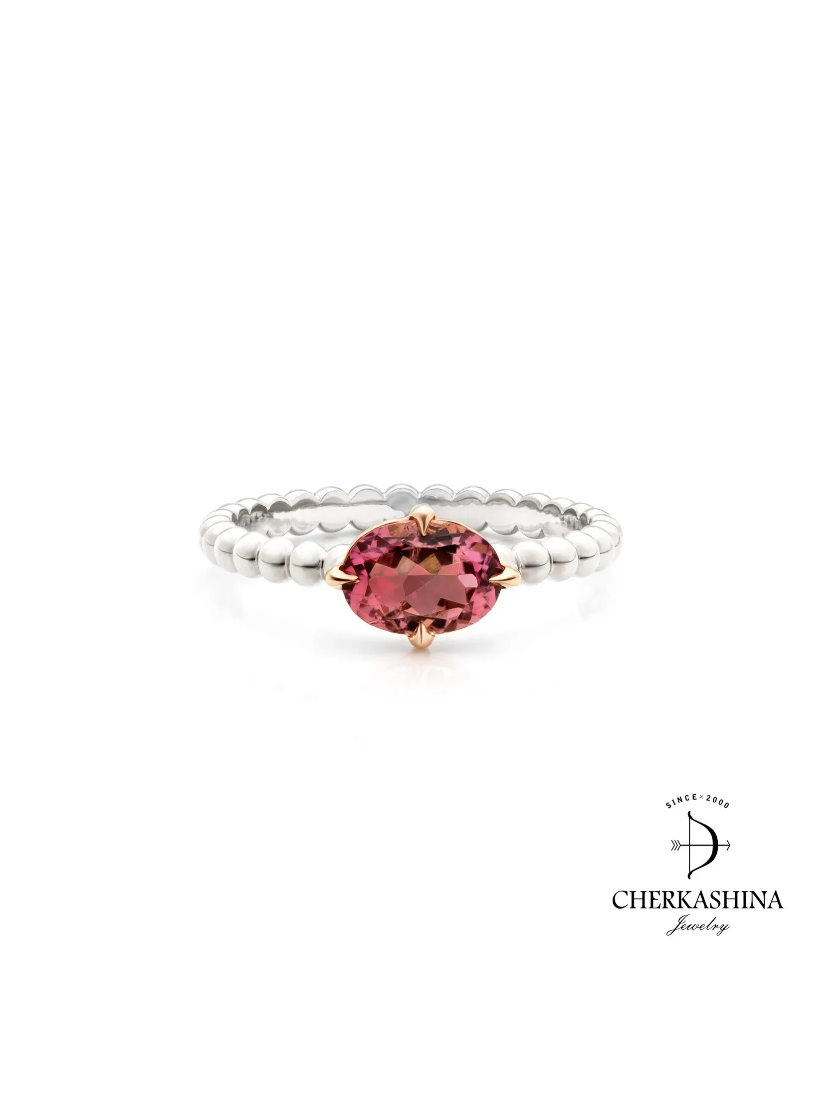 Вставка - розовый турмалин,, весом - 1 карат.