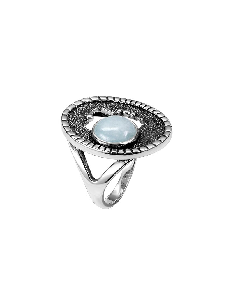 Кольцо Ракушка - это трендовое ювелирное украшение, символизирующее морскую стихию, нежность и спокойствие. Оно используется как стильный аксессуар, талисман для привлечения гармонии, защиты в путешествиях, укрепления семейных уз (на безымянном пальце) или карьерного роста (на указательном). Металл - серебро 925 пробы. Вид покрытия - чернение. Вставка - аквамарин. Средний вес - 9.48 гр.