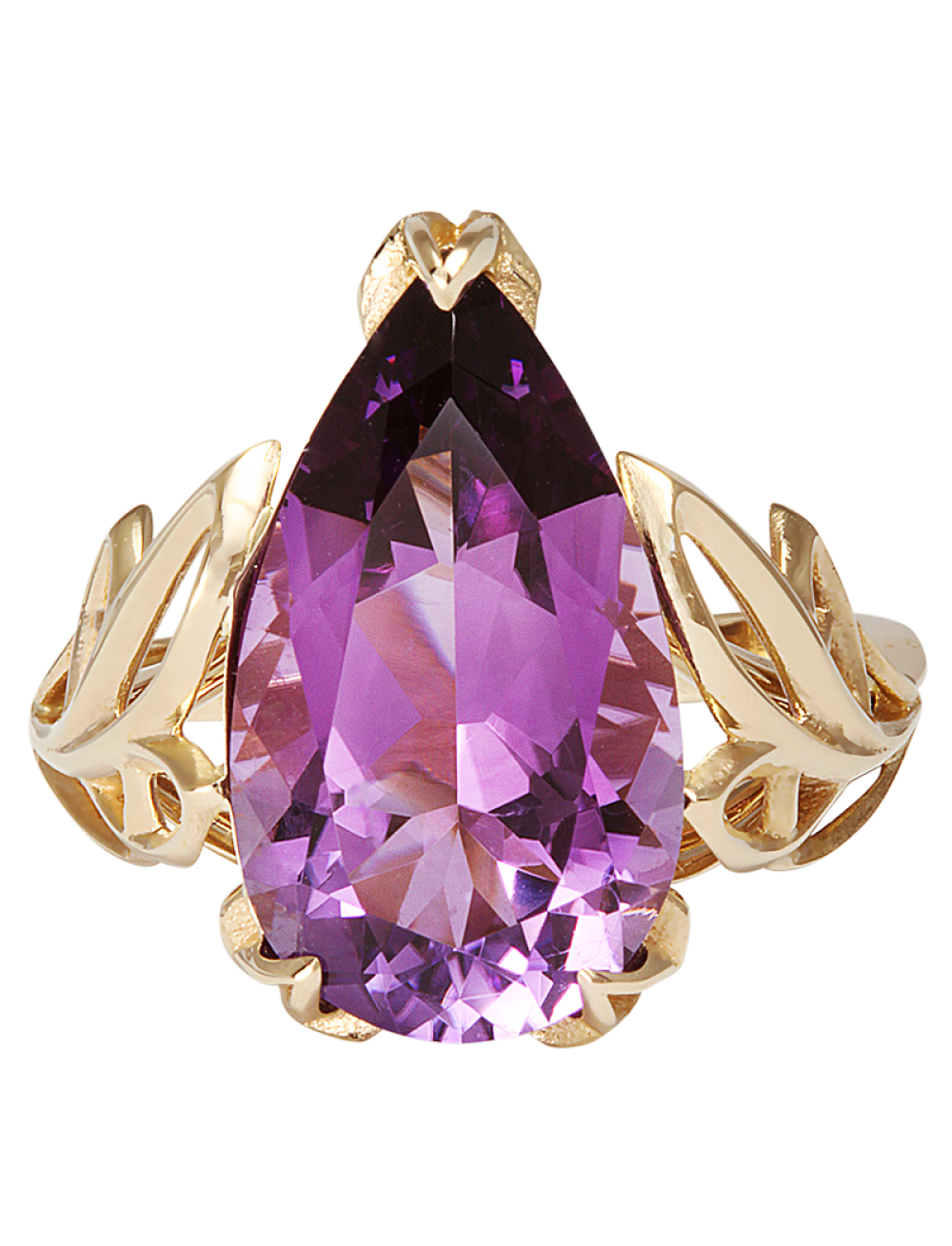 Кольцо с аметистом - это ювелирное украшение с разновидностью кварца фиолетового цвета, которое считается мощным оберегом для обретения душевного спокойствия, гармонии и защиты от негатива. Его носят для борьбы с зависимостями, улучшения интуиции, привлечения верной любви и сохранения ясности ума. Аметист может менять свой оттенок в зависимости от освещения. Металл - золото 585 пробы. Вес - 4,56 гр. Вставки: 1 аметист груша 5,29 карат.