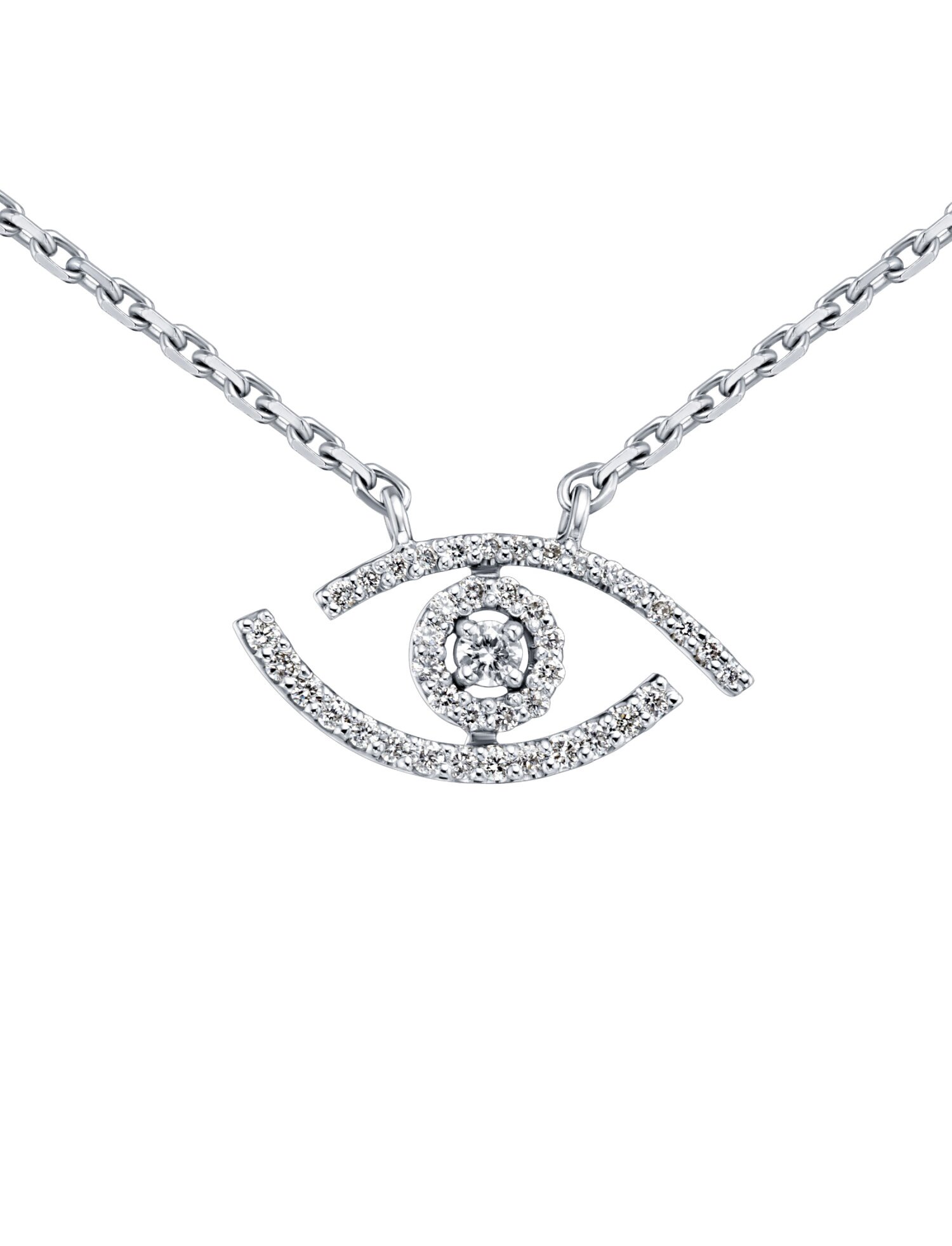 Колье Глаз с бриллиантами Золото 585 белое - это ювелирное украшение-оберег, сочетающее модный символизм и роскошь. Оно представляет собой подвеску в форме глаза, где белое золото (сплав золота с палладием/никелем) подчеркивает холодный блеск бриллиантов. Носится для защиты от сглаза и как стильный аксессуар. Колье является популярным трендом в ювелирной моде, подходящий как к повседневному, так и к вечернему образу, а также универсальным дорогим подарком на памятные даты. Вес изделия - 4,78гр. Размеры - 40см., 45 см.