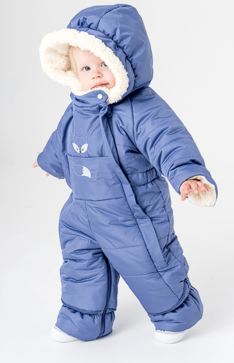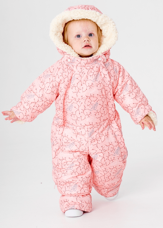 Комбинезон-трансформер (конверт) для малышей. Две длинные центральные застежки на спиральной молнии с цельновыкроенными ветрозащитными планками, застежка на две кнопки на горловине. На груди накладной карман. Спинка по линии талии собрана на эластичную тесьму. Рукав — реглан, по низу рукава- цельновыкроенная рукавичка. Капюшон втачной, глубокий, хорошо закрывает от ветра, передний край капюшона по боковым частям собран на эластичную тесьму.