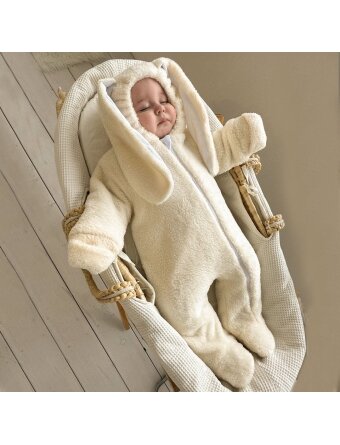 Комбинезон Зайка молочный - это милый и теплый демисезонный комбинезон для малыша. Можно использовать как самостоятельную одежку на теплую весну-осень, либо он может служить идеальной поддёвкой под более теплую одежду. Ручки с отворотиком - функция антицарапок + пальчики малыша в тепле. Капюшон на эластичной резинке защитит от ветра и прохлады. Планка на горлышке защитить от зажимов. Молния в ножку, для быстрого переодевания. Температурный режим от плюс 10 до 20 тепла. Подклад хлопок 100%. Верх-трикотаж.