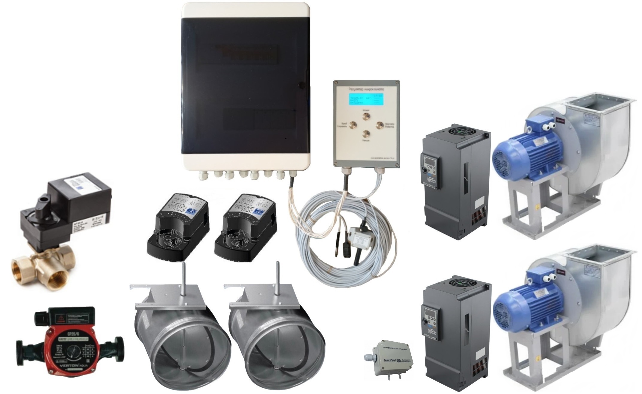 Применение одного контроллера вместо отдельных регуляторов микроклимата позволяет логически правильно управлять нагревателем и охладителем, увлажнителем, регулирующими заслонками воздуха.