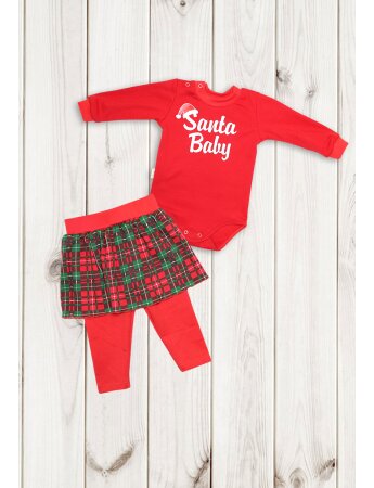 Комплект детский "Рождество-девочка" - это тематический набор одежды (полукомбинезон-боди, штанишки с юбочкой), который надевают на Рождество/Новый год, чтобы создать праздничное настроение, принять участие в утренниках (как ангелочек, принцесса) или просто порадовать ребенка в эти волшебные дни. Размер - 62,74 см. Цвет красный с принтом - зеленая елочка.
