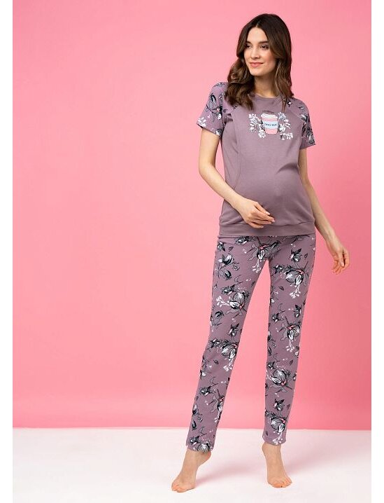 Комплект для дома Лукас для беременных и кормящих выполнен из мягкого нежного трикотажа: хлопок-интерлок премиум качества. Комплект создан с учетом изменения пропорций тела во время беременности. Для легкого доступа к груди предусмотрены боковые прорези под внешним слоем. Длина футболки по спинке - 68 см. Пояс брюк - под животик. Длина брюк по внутреннему шву - 76 см. В комплекте - футболка, брюки. Рекомендации по уходу - деликатная стирка в стиральной машине при 30°C.