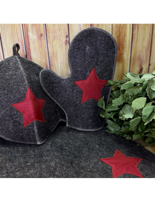 Комплект для сауны "Буденовец" включает в себя коврик и рукавицу, которые выполняют защитную и гигиеническую функцию - они защитят от ожога, а так же от бактерий, которые с высокой скоростью размножаются в жаркой среде. Шапка является основным банным аксессуаром, ведь она заботится о здоровье. Горячий воздух в парной бани и сауны поднимается вверх, голова попадает под влияние самой высокой температуры, а артериальное давление поднимается. Шапка из войлока, который является антибактериальным и гиппоаллергенным материалом, защитит голову от перегрева. Принадлежности из войлока отлично пропускают воздух и тепло, из-за чего всегда поддерживают комфортную температуру и влажность.