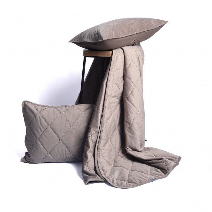 Комплект PARADISE: покрывало + наволочка - это набор домашнего текстиля, состоящий из стеганого покрывала для кровати (используется для декора, защиты постельного белья от пыли, а летом как легкое одеяло) и одной или нескольких декоративных наволочек, которые идеально сочетаются с ним по цвету и стилю, создавая законченный образ спальни. Это многофункциональный и декоративный элемент, часто из хлопка, который придает интерьеру уют и завершенность. Комплект имеет двусторонний дизайн - благородное сочетание мягкого велюра и практичной микрофибры позволяет менять облик комнаты простым переворачиванием комплекта. Цвет -коричневый.