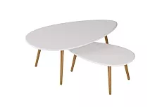 Длина 120 см Ширина 70 см Высота 46 см 50 см 36 см Материал МДФ 16 мм Вес 16 кг. Журнальный стол "Твинс"- нестандартное решение для вашего интерьера. Два столика разных размеров и высоты соединены в единую композицию в скандинавском стиле. В дизайне использована простая геометрия столешниц в белом цвете в сочетании с деревянными опорами. Данный столик- настоящая находка для любителей функциональной мебели. Его с легкостью можно перемещать, комбинировать между собой и с другими предметами мебели, позволяя воссоздать атмосферу истинного комфорта и удобства. Оригинальная модель стола "Твинс" безусловно найдет свое применение как в жилом, так и в офисном помещении, оформленном в современном стиле.