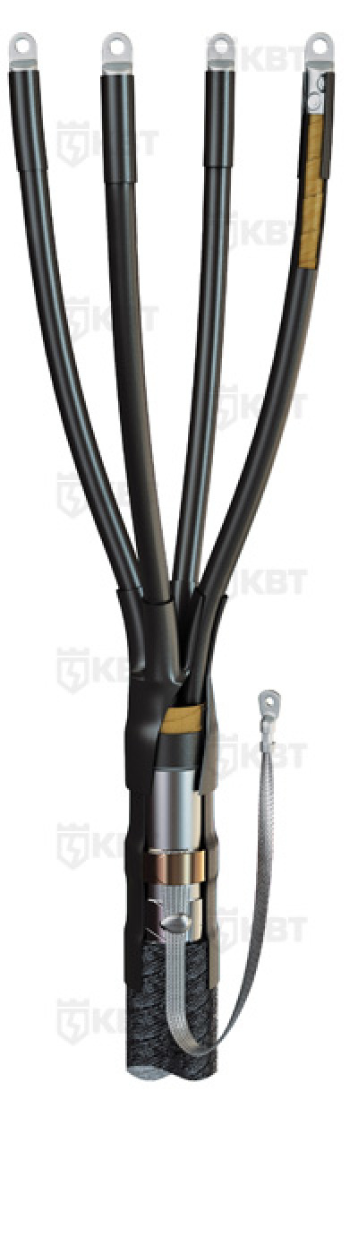 Концевые термоусаживаемые муфты предназначены для оконцевания 4-х и 3-х жильных кабелей с бумажной маслопропитанной изоляцией, с броней или без брони, на напряжение до 1кВ. Комплект универсален и может быть использован для монтажа муфты как внутренней, так и наружной установки. Материалы, из которых изготовлены термоусаживаемые компоненты муфты, обладают стойкостью к ультрафиолетовому излучению и погодно-климатическим условиям. Монтаж узла заземления осуществляется комбинированным способом. Базовая комплектация включает в себя пружину постоянного давления, используемую для крепежа провода заземления к металлической оболочке. Крепеж на бронелентах осуществляется методом пайки. Комплект муфты универсален и позволяет использовать как кабельные наконечники под опрессовку, так и болтовые наконечники.