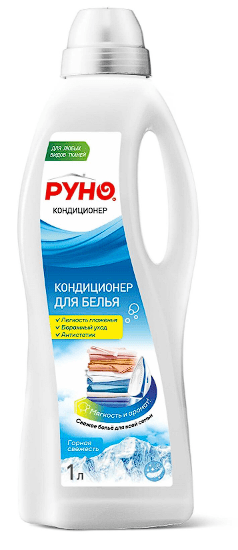 Кондиционер для белья РУНО концентрат. Для ручной и машинной стирки. Обеспечивает эффективный и бережный уход за тканью, придает белью невероятную воздушность и мягкость, объемность ткани, предотвращает потерю цвета.