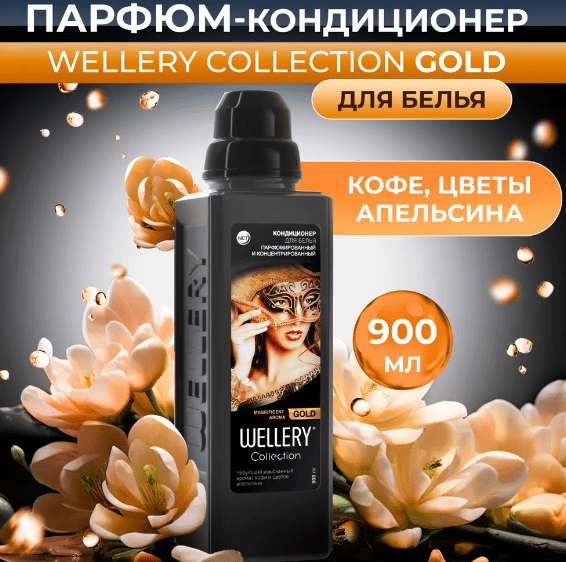 Кондиционер для белья парфюмированный Wellery Collection "Gold" с ароматом кофе и цветов апельсина, 900 мл