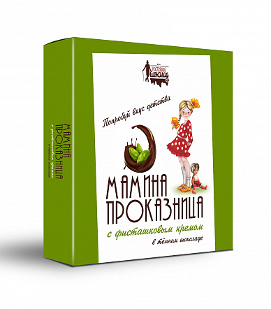 Побалуйте себя очаровательным лакомством - конфетами «МАМИНА ПРОКАЗНИЦА» из темного шоколада в сочетании с начинкой - фисташковый крем.
