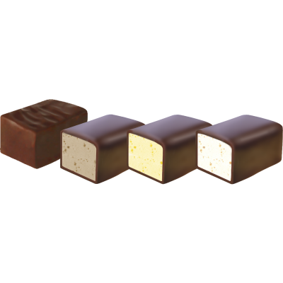Сбивной корпус белого, желтого и коричневого цвета со сливочным, лимонным и шоколадным вкусом.