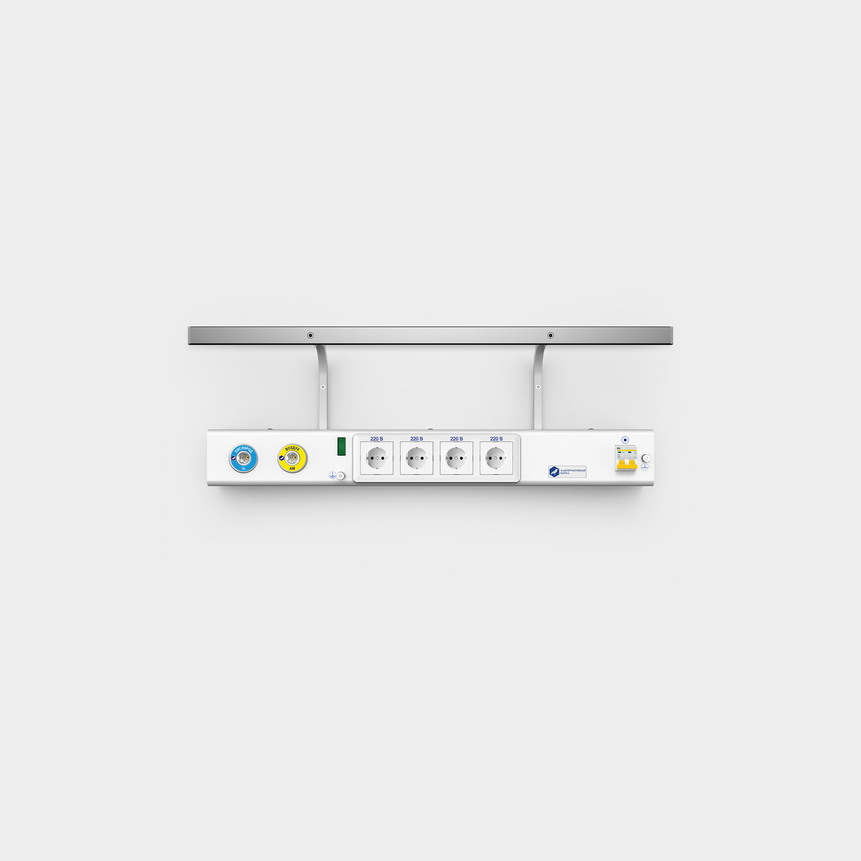 Консоль настенная медицинская КН-023-АльтН - это однорядная прикроватная система подачи газов и электропитания, предназначенная для оснащения палат, палат интенсивной терапии и реанимации. Она обеспечивает удобный доступ к медицинским газам (кислород, сжатый воздух и др.), электроэнергии и связи с персоналом, обеспечивая безопасность и комфорт пациента. Материал - металлический лист. Длина на 1 койко-место - 800 мм.