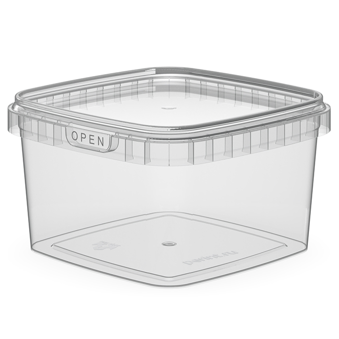 Контейнер прямоугольный объемом 850 мл с длиной примерно 131 мм и контурным замком — это пластиковая упаковка, предназначенная для хранения и транспортировки больших порций пищи с надежным герметичным закрытием.