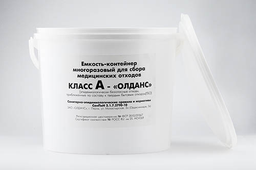 Контейнер-ведро для сбора медицинских отходов класса А - это специализированная емкость белого цвета, предназначенная для безопасного сбора и временного хранения эпидемиологически безопасных отходов, не контактировавших с инфекционными больными или биологическими жидкостями. Компактная и легкая емкость из полиэтилена с широкой горловиной. Емкости объемом от 3л до 20 л имеют форму ведра, объемом 32 л и 45 л - форму бака. Крышка с плотно пригнанными краями, и ободом для фиксации по нижнему краю, герметично закрывающая основу, которая дает возможность транспортировать отходы, в том числе и с наличием жидкой консистенции.