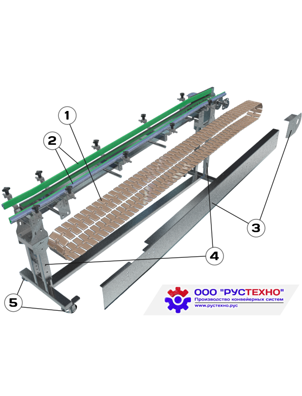 Длина секции 1000, 1500, 2000, 2500, 3000, 5000 мм и другие длины по запросу Высота стандарт 800 мм (мин 100 мм) Вид исполнения горизонтальное / наклонное / поворотное Материал подбирается под ТЗ: конструкционная сталь нержавеющая сталь (для гигиенических условий) Стыковка с существующем оборудованием да Опоры с регулируемой высотой Ограждение с регулировкой высоты и ширины Материал ограждение пластиковое / роликовое / нержавейка Дополнения (опционально) борты (трубчатый / металлопластик / сталь) мобильность (колеса с фиксацией) верхний защитный кожух Несущий механизм Пластинчатая цепь прямоходная / поворотная / с накладками Материал цепи пластик (ПВХ) / нержавеющая сталь с накладками Ширина цепи 82,5 / 114,3 / 190,5 / 304,8 мм Транспортировка скоростей зависит от ТЗ Электрическая часть Система управления автоматический выключатель защиты двигателя (кнопки пуск и стоп) частотный преобразователь (по запросу) шкаф управления (по запросу) кнопка "Аварийный стоп" (по запросу) реверс (по запросу) регулировка скорости (по запросу) Привод мотор-редукторы (сторона размещения по выбору слева / справа / снизу) мотор-барабаны (по запросу) кожух двигателя (по запросу) Приводной барабан Ø 60-132 мм Приводной вал поддерживается в корпусных подшипниках закрытого типа Напряжение 220 / 380 В Электрическая мощность зависит от конечной системы по ТЗ Дополнительные опции Датчики металлодетектор маркеровка штрих-сканер датчик габаритов датчик распознания цвета счетчик датчики по ТЗ заказчика LED освещение освещение рабочего места освещение по ТЗ Прочее Расположение системы внутри / снаружи помещения Влажность окр. среды пониженная / стандартная / повышенная Температура окр. среды пределы зависят от ТЗ и конечной конструкции - Описание Пластинчатые конвейеры цепного типа, или как их еще называют - пластинчатые конвейеры(иногда их зовут бутылочными) потому, что они имеют широкое применение в индустрии напитков и идеально подходят для транспортировки бутылок, пакетов, канистр и других емкостей. Кроме этого, данное семейство конвейеров смогло хорошо зарекомендовать себя в транспортировке разных упаковок, коробок и стальных деталей, которые разогреты до высокой температуры, и прочей продукции. Пластинчатые цепные линии также комплектуют цепями из полимеров с низким уровнем трения, различной ширины. Эти конвейеры применяются в тех местах, где требуется низкий коэффициент по трению между цепью и транспортируемыми материалами, и в местах, где продукт имеет высокую скорость обработки поверхности или очень чувствителен к уровню трения. Для того, чтобы разместить оборудование на площади, на складе обычно применяются профили радиуса для поворотов - 90° и 180°. Профили на другие углы и радиусы изготавливают по заказу. Разработаны такие системы цепей шириной в 82,5 мм, 114 мм, 190 мм, 254 мм, а также 305 мм. Обслуживание цепных конвейеров обычно минимальное. Достаточно обратить свое внимание на натяжение после первых 40 часов работы конвейеров, и удалить необходимое число звеньев. Регулярно очищайте все оборудование для снижения уровня коэффициента трения и увеличения времени эксплуатации цепи.