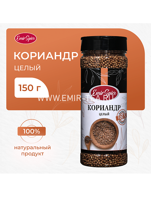 Кориандр, одна из старейших специй в мире. Его семена обладают ароматом, похожим на смесь лимона, шалфея и тмина. В кулинарии кориандр широко используется в супах и салатах, в блюдах из мяса и птицы. В русской кухне пряность популярна при засоле капусты, в приготовлении кваса, сиропов и др. Он хорошо сочетается с фасолью и чечевицей.Помимо вкусовых качеств кориандра широк список его полезных свойств. Он улучшает аппетит, способствует здоровому пищеварению, оказывает положительное влияние на высвобождение инсулина в организме и, кроме того, приводит к снижению холестерина. Содержит пищевые волокна, кислоты, крахмал, золу, витамины, макроэлементы и микроэлементы.