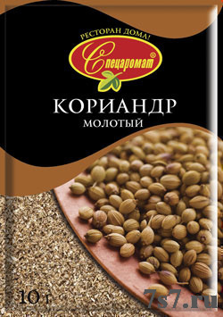 Молотый кориандр обладает нежным сладковатым ароматом.Это одна из основных пряностей, используемых в индийской кухне.Кориандр применяют для ароматизации мясных , рыбных, овощных блюд, в приготовлении хлебобулочных и кондитерских изделий, консервировании фруктов, а так же кориандр является обязательным компанентом большинства смесей пряностей.
