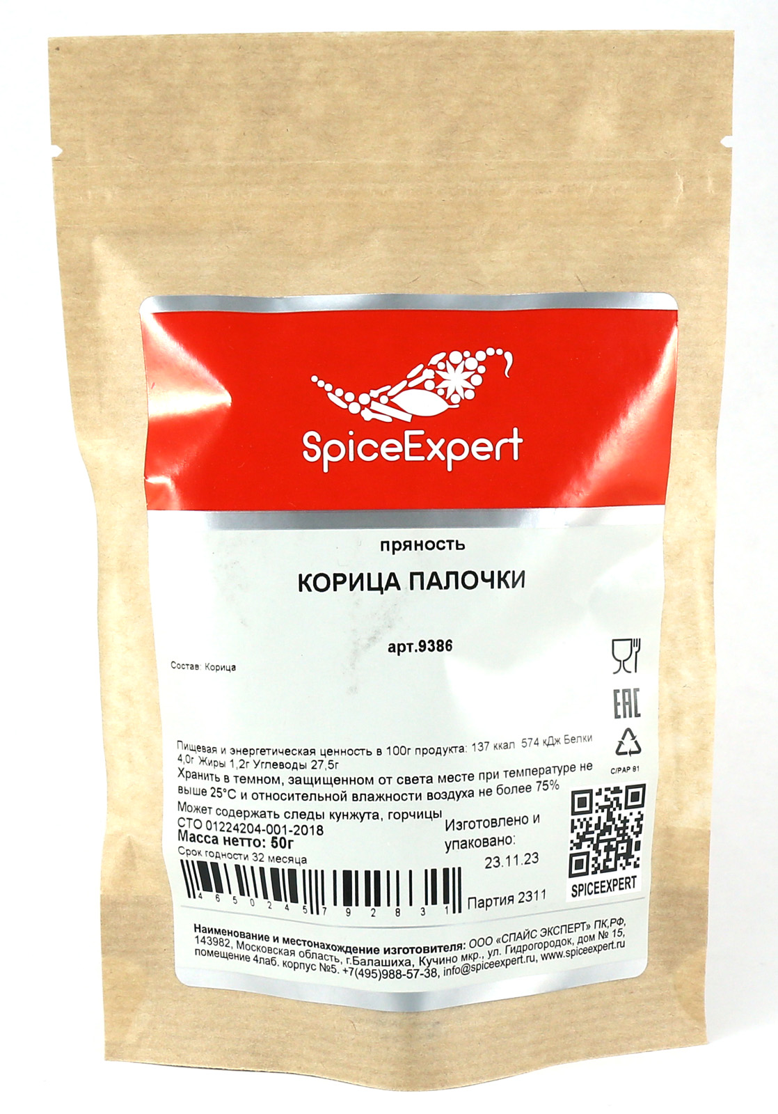 Корица палочки 50гр крафт пакет SpiceExpert