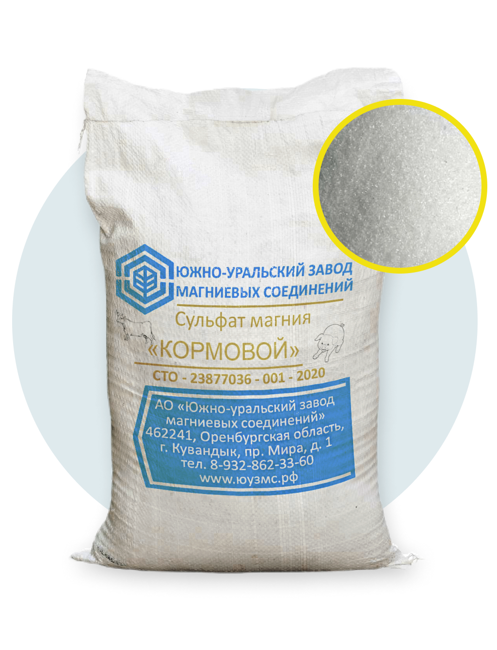 Сульфат магния кормовой предназначен для обогащения магнием кормового сырья, комбикормов и премиксов для сельскохозяйственных животных. Кормовая добавка «Сульфат магния Кормовой» предназначена для обогащения кормового сырья, комбикормов и премиксов для сельскохозяйственных животных магнием. Содержит сульфат магния 7-водный, полученный путем химического синтеза. Представлен в виде белого порошка, растворимого в воде. Средство взрыво- и пожаробезопасно, однако работать с ним нужно в защитных очках и маске, избегая попадания на слизистые оболочки и кожу.