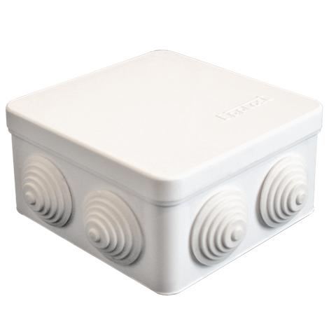 Коробка распределительная для открытой проводки - это корпус, предназначенный для безопасного соединения и защиты мест разветвления электропроводки, проложенной открытым способом по поверхности. Она защищает соединения от механических повреждений, пыли и влаги, а также предотвращает распространение огня при возгорании проводов. Размер - 105х105х56 мм. Цвет - белая. Имеет 7 выходов, 4 гермоввода, и крышку защелкивающуюся. Материал - пластик. Степень звщиты - IP 54.