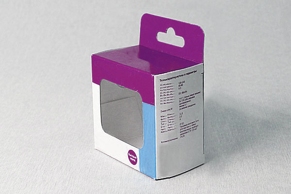 Коробка из тонкого картона привлечет внимание производителей и продавцов электроустановочных изделий и товаров:розеток, выключателей, блоков, рамок, монтажных аксессуаров и т.п.На лицевой части упаковки предусмотрено квадратное окно с прозрачной пленкой, что даст покупателям возможность получить представление об изделии без распаковывания, а вырубной европодвес позволит удобно и эргономично разместить товар в торговых залах и на стендах. По желанию заказчика на упаковке возможна печать как в 1-2-3 цвета фирменными пантонами, так и полный цвет.