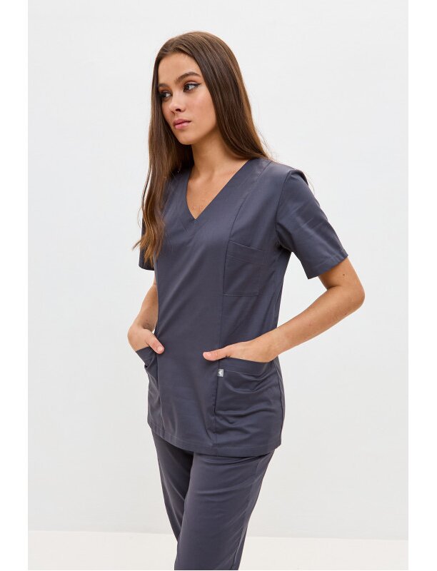Костюм №250 серый медицинский женский из ткани стрейч это универсальная форма одежды для специалистов многих сфер деятельности: врача, медсестры, работника скорой помощи, ветеринара, повара, косметолога, бьюти специалиста, парикмахера, клининга. Данная модель костюма выполнена из ткани с большим содержанием хлопка, с добавлением эластана, что придает ей растяжимость, а вам дарит комфорт и удобство в носке. Благодаря этим свойствам ткани наша медодежда зарекомендовала себя как легкая в уходе, удобная, износостойкая и практичная. Кроме того, униформа бренда МЕДЭЛИТА это всегда про высокое качество пошива, контроль всех этапов производства и упаковки. Данный комплект медицинской одежды включает в себя медицинскую блузу и брюки джоггеры с карманами. Джоггеры имеют универсальную длину, подходящую большинству покупателей.