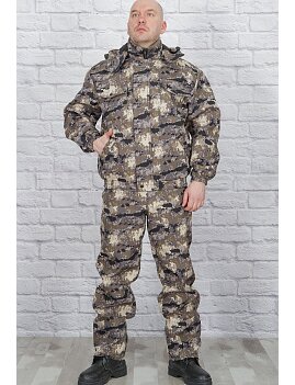 Костюм 925, полофлис рост 170-176 удобный демисезонный костюм для любителей активного отдыха, охоты и рыбалки из ткани рипфлис. Рипфлис - это плотное, практичное в носке синтетическое полотно рип-стоп, дублированное флисом с изнанки. Преимущество материала – хорошая теплоизоляция, защита от ветра, влаги и от температурных колебаний. Благодаря флису внутри - ткань приятная, не шуршит. Куртка на молнии и с ветрозащитной планкой на кнопках, с отстёгивающимся капюшоном. Удобные накладные нагрудные и нижние карманы, рукава снизу на резинке. Брюки прямого кроя, пояс с широкой резинкой и шлёвками, по бокам карманы.