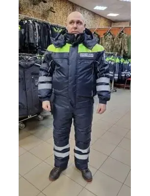 Костюм ДПС 777 зима с полукомбенизоном изготовлен из синтетической ткани дюспо (Dewspo) которая отличается уникальными свойствами и специфической пропиткой. Универсальное полотняное плетение полиамидных нитей, плюс обработка позволяют ей быть водонепроницаемой, ветрозащитной, водоотталкивающей и воздухообменной. Ткань не "застывает" на морозе и не шуршит.Костюм состоит из куртки и полукомбинезона.Куртка с утепленной подкладкой, съемным утепленным капюшоном, съемным воротником из искусственного меха.Куртка прямого покроя. Центральная застежка на двух замковой тракторной "молнии", закрытой ветрозащитным клапаном на кнопках. В области плечевых швов расположены погоны на кнопках с съемными фальшпогонами для крепления знаков различия.Два нагрудных накладных кармана на кнопкахДва боковых подрезных кармана утепленные флисомНа внутренней подкладке расположены два больших кармана на молнии для документов и один объемный для телефонаМежду молнией и ветрозащитным клапаном есть потайной отделанный кожей карман на липучкеТри нарукавных кармана на молнии (1-н вертикальный на левом рукаве и 2-а вертикальный и горизонтальный на правом)По низу рукавов притачные манжеты с эластичной широкой резинкойСъемный утепленный капюшон пристегивается на кнопки и оборудован небольшим козырьком Съемный воротник из искусственного меха пристегивается на пуговицыУтепленная подкладка на синтепонеНа спине надпись ДПС из светоотражающего материала. Полукомбинезон:застежка на "молнии". Два боковых прорезных кармана утеплены флисом. На груди имеются два кармана, один вертикальный на молнии, второй накладной на липучке. Бретели из двойной широкой резинки препятствующей сдавливанию застегиваются на пряжки. Верх полукомбинезона как спереди, так и сзади утеплен флисом. Брюки утеплены синтепоном. Предусмотрен анатомический покрой зоны коленей усилен прочной водонепроницаемой тканью. Снегозащитные муфты внутри брюк на резинке.