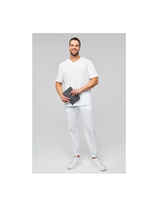 Костюм хирургический мужской 7-79-01-1 белый с джоггерами в классическом исполнении от бренда Doctor Big состоит из прямого топа и свободных брюк. Топ имеет неглубокий V-образный вырез, короткий рукав, накладные карманы и модные в 2024 году разрезы по низу. Стильные свободные джоггеры дополнены удобными карманами, а пояс и нижние манжеты выполнены из широкой эластичной резинки. Чтобы костюм выглядел максимально OVERSIZE необходимо выбирать на 1 размер больше своего. Костюм прекрасно подойдёт высоким мужчинам.