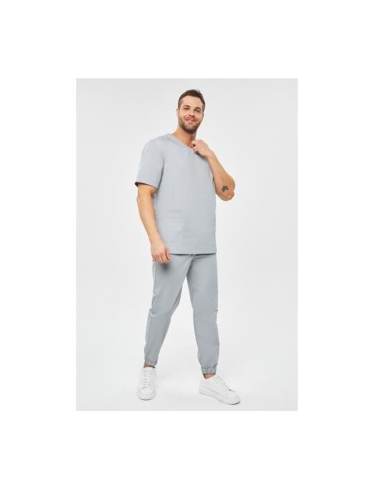 Костюм хирургический мужской 7-79-01-1 серый с джоггерами в классическом исполнении от бренда Doctor Big состоит из прямого топа и свободных брюк. Топ имеет неглубокий V-образный вырез, короткий рукав, накладные карманы и модные в 2024 году разрезы по низу. Стильные свободные джоггеры дополнены удобными карманами, а пояс и нижние манжеты выполнены из широкой эластичной резинки. Чтобы костюм выглядел максимально OVERSIZE необходимо выбирать на 1 размер больше своего. Костюм прекрасно подойдёт высоким мужчинам.