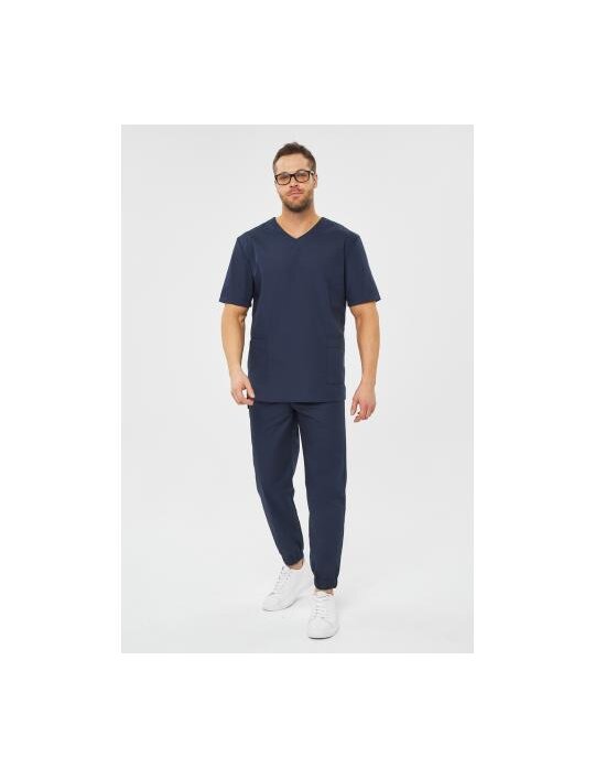Костюм хирургический мужской 7-79-01-1 синий с джоггерами в классическом исполнении от бренда Doctor Big состоит из прямого топа и свободных брюк. Топ имеет неглубокий V-образный вырез, короткий рукав, накладные карманы и модные в 2024 году разрезы по низу. Стильные свободные джоггеры дополнены удобными карманами, а пояс и нижние манжеты выполнены из широкой эластичной резинки. Чтобы костюм выглядел максимально OVERSIZE необходимо выбирать на 1 размер больше своего. Костюм прекрасно подойдёт высоким мужчинам.