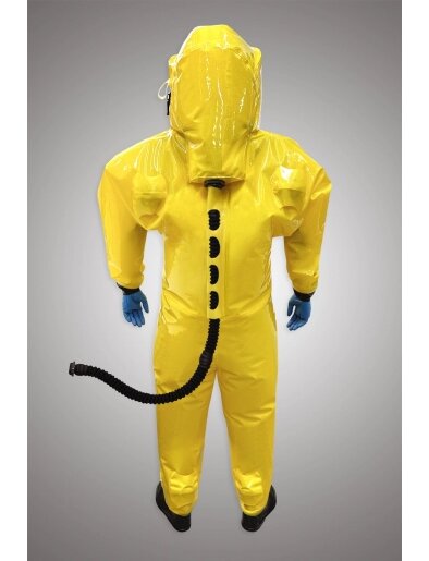 Костюм изолирующий из эластичного полимерного материала 0,3 мм для работы с микроорганизмами I-IV групп патогенности, с активными фармацевтическими субстанциями. Костюм даёт возможность находиться в среде, где существует риск заражения особо опасными инфекциями.Внутреннее пространство защищено положительным давлением, поступающим от системы централизованной подачи воздуха или автономной фильтровентиляционной установки. Поток распределяется через внутреннюю