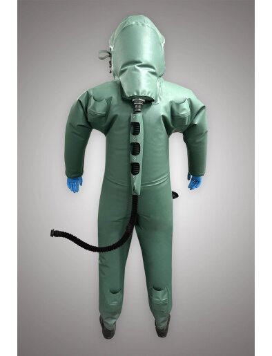 Костюм изолирующий из эластичного полимерного материала 0,5 мм Лабораторная версия для работы с микроорганизмами I-IV групп патогенности, с активными фармацевтическими субстанциями.Костюм даёт возможность находиться в среде, где существует риск заражения особо опасными инфекциями.Внутреннее пространство защищено положительным давлением, поступающим от системы централизованной подачи воздуха или автономной фильтровентиляционной установки. Поток распределяется через внутреннюювоздушную трассу защитного костюма.