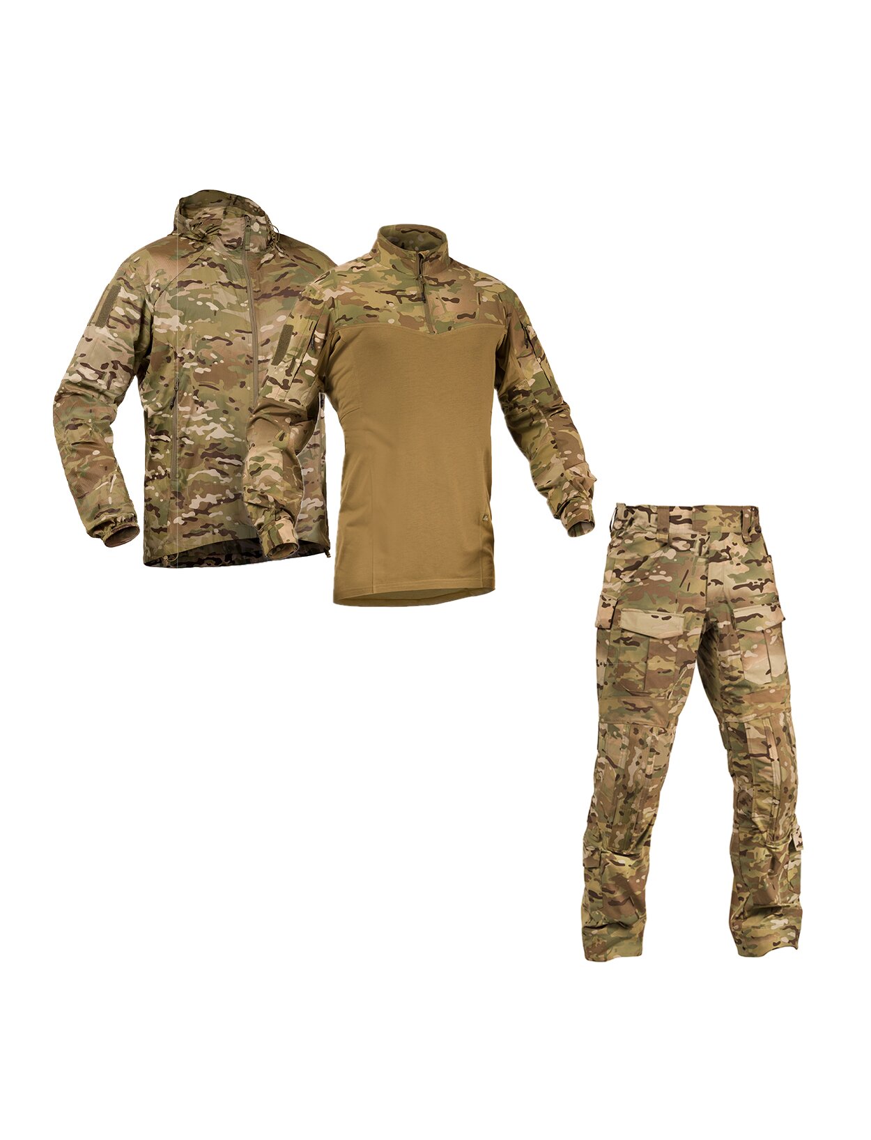 Костюм L10 Tropical 3.0 специальный, спроектирован для применения в теплых и жарких погодных условиях. Костюм состоит из боевой рубашки, боевых брюк и легкой ветровки. Комплект изготовлен из эластичного материала, состоящего из волокон нейлона с добавлением Спандекса. Торс рубашки, входящей в состав костюма, выполнен из трикотажа, не поддерживающего горение. Эргономика комплекта, крой и набор функциональных элементов обеспечивают комфорт во время выполнения задач. Костюм комплектуется съемными наколенниками и налокотниками.