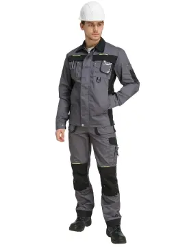 Костюм мужской №808 состоит из куртки и брюк. Куртка укороченная с центральной супатной застежкой на молнию и контактную ленту, с притачным поясом, с втачными рукавами и отложным воротником. Ширина куртки по поясу регулируется хлястиками на кнопках. Усиления в области коленей предназначены для вставки амортизирующих вкладышей.Куртка оснащена функциональными карманами, в том числе на рукаве и прозрачным пластиковым карманом для бейджа (пропуска).Брюки имеют множество функциональных и удобных карманов, в которых можно разместить самый необходимый инструмент, расходные и крепежные материалы.