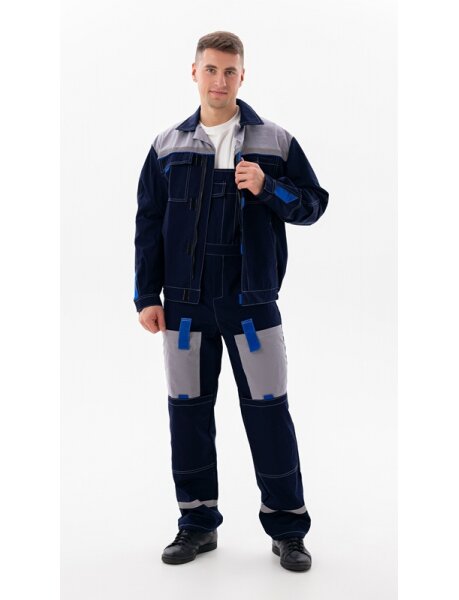 Костюм мужской для обеспечения безопасности и комфорта сотрудников на производстве. Он защищает от воздействия пыли, искр, высоких и низких температур, кислот и щелочей.В комплект рабочего костюма входит куртка-спецовка и полукомбинезон.Изготавливается из смесовых тканей (хлопок + полиэстер) с влагозащитной пропиткой. Обеспечивает комфорт при температуре от +5°C и выше.