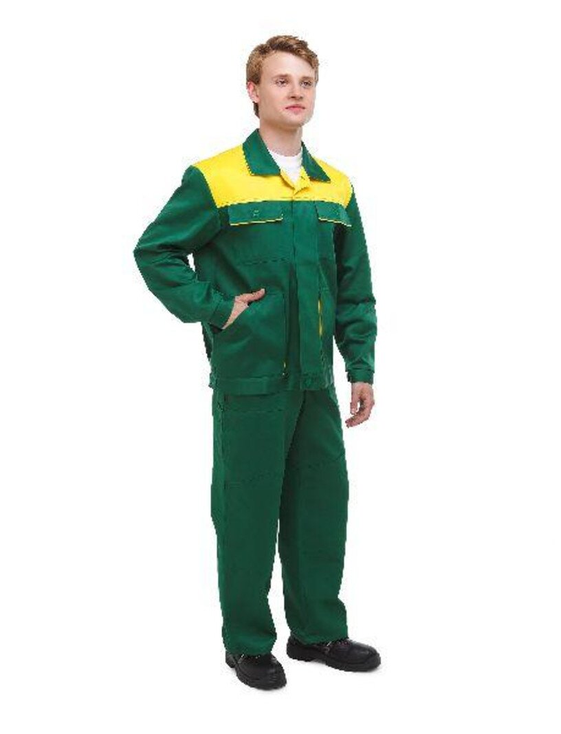 Костюм рабочий Сатурн зеленый/желтый подходит для работы на улице, по отзывам покупателей, удобный, лёгкий и хорошо сидит.. Костюм куртка и полукомбинезон