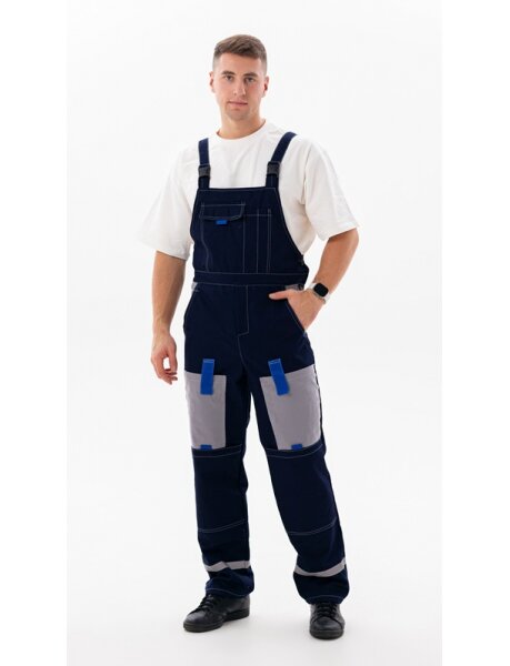 Костюм рабочий серый/синий для обеспечения безопасности и комфорта сотрудников на производстве. Он защищает от воздействия пыли, искр, высоких и низких температур, кислот и щелочей.В комплект рабочего костюма входит куртка-спецовка и полукомбинезон.Изготавливается из смесовых тканей (хлопок + полиэстер) с влагозащитной пропиткой. Обеспечивает комфорт при температуре от +5°C и выше.